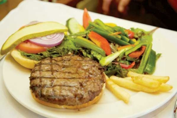 Calentar la sartén y freír las hamburgueses como a la plancha. Una vez doradas se sirven con una cucharada de tomate frito y una buena ensalada verde, o con papas fritas y ketchup.